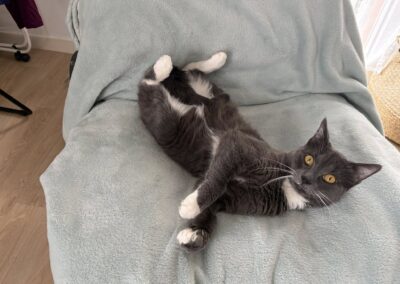 C’est un jeune chat plein d’énergie et très dynamique. C’est une vraie petite boule d’énergie qui a besoin de se dépenser au quotidien. Il lui faut donc un environnement avec assez de stimuli (jeux, espace en hauteur…) pour pouvoir s’épanouir pleinement.