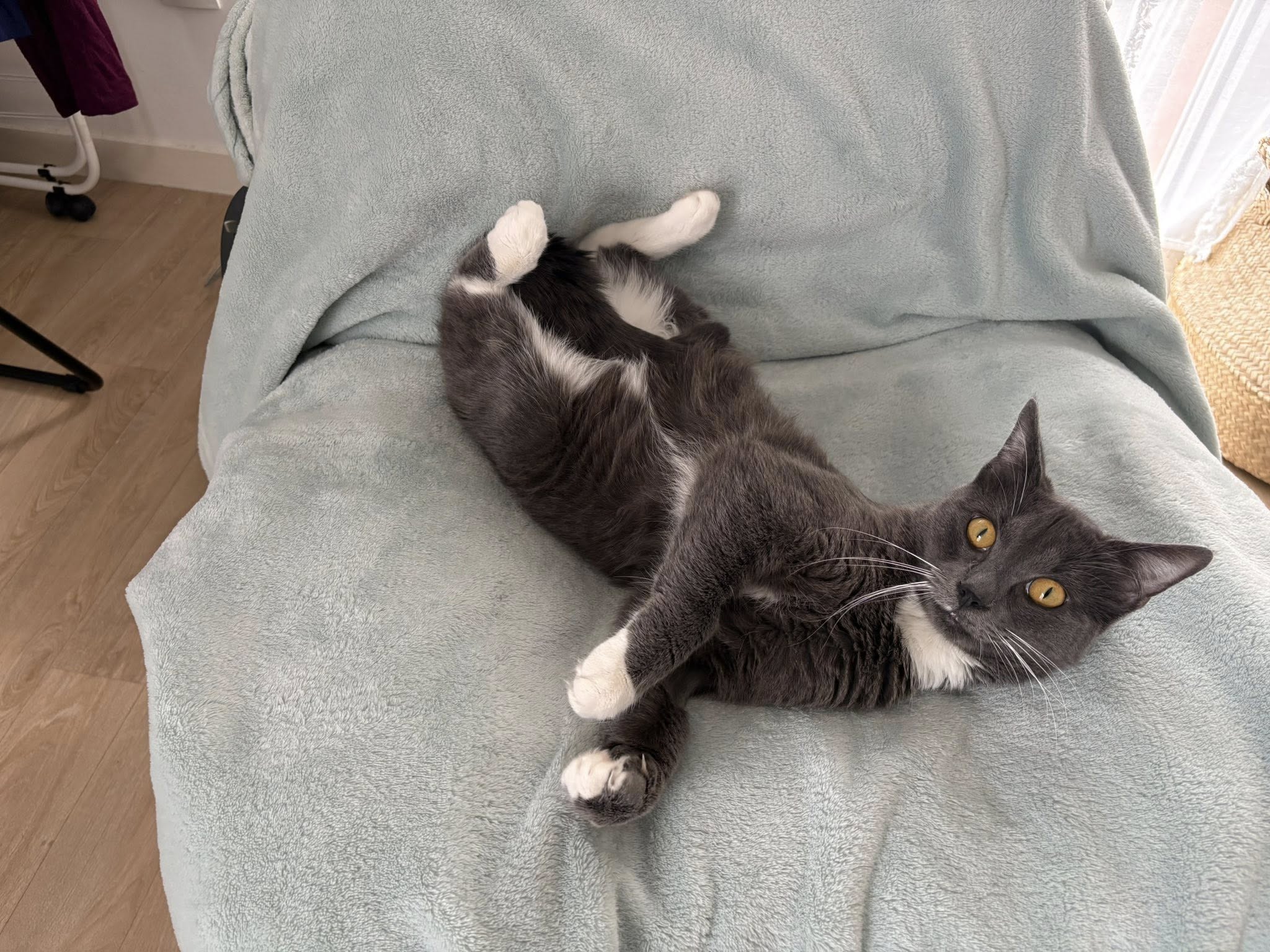 Baïko est également un petit chat bavard et très joueur. Il aime jouer seul, mais aussi partager des moments de jeu avec nous, notamment avec sa canne à pêche ou même avec de simples chaussettes. C’est un chat très vif, qui peut avoir tendance à mordiller ou griffer lorsqu’il joue.